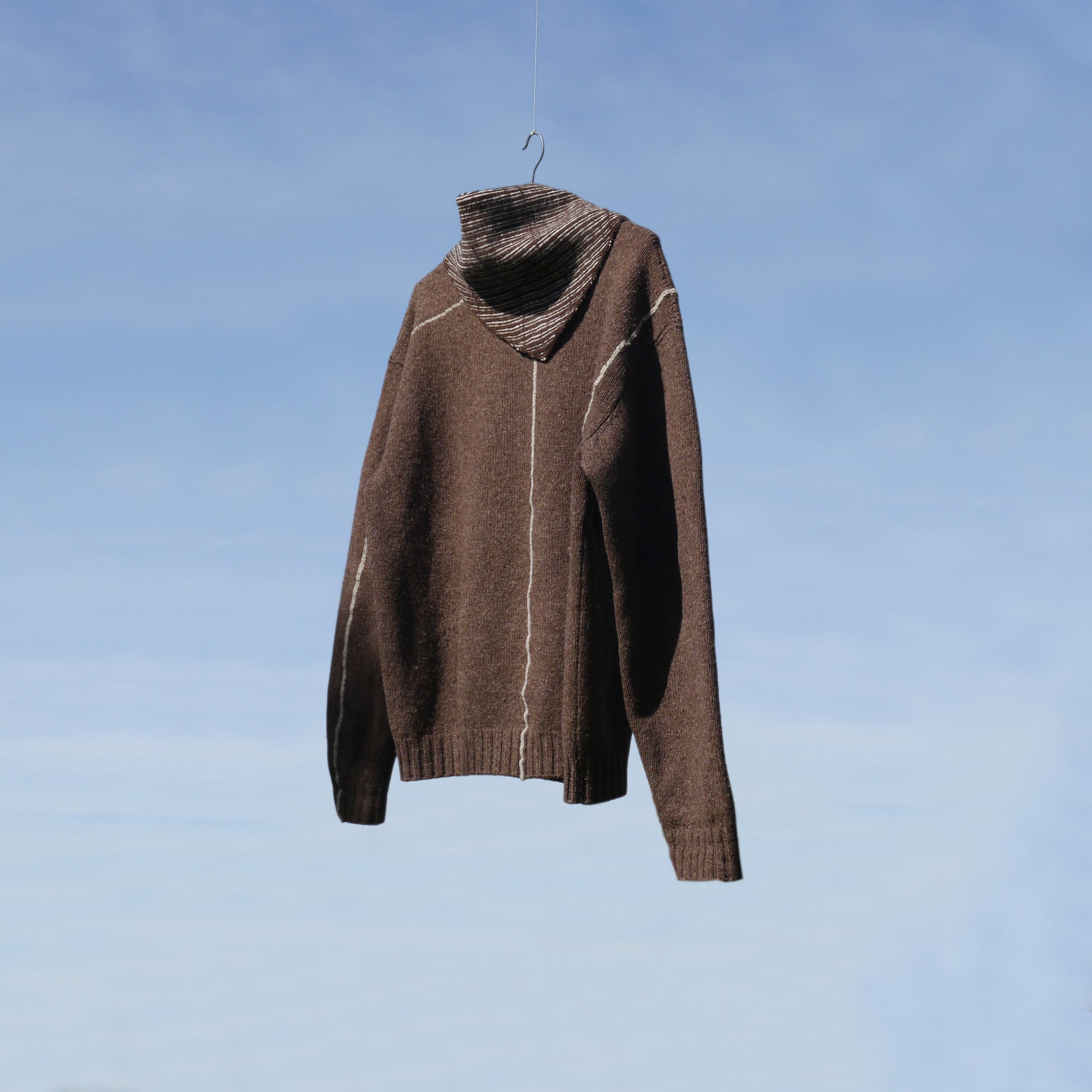 Warm yet lightweight, offering insulation without bulk. Slowly made on a domestic knitting machine from the 1980s and finished by hand.