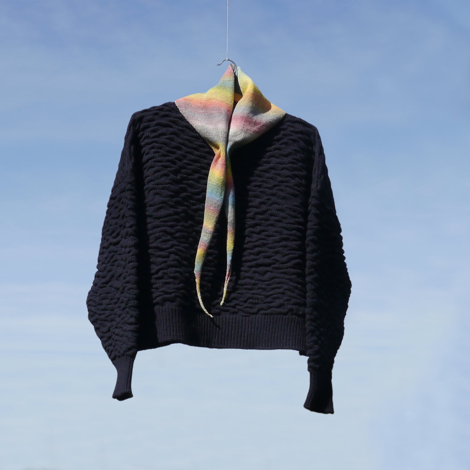 Acolourful and light-spirited design, grounded by the natural warmth of merino wool and benefiting fromm its breathable, insulating qualities.