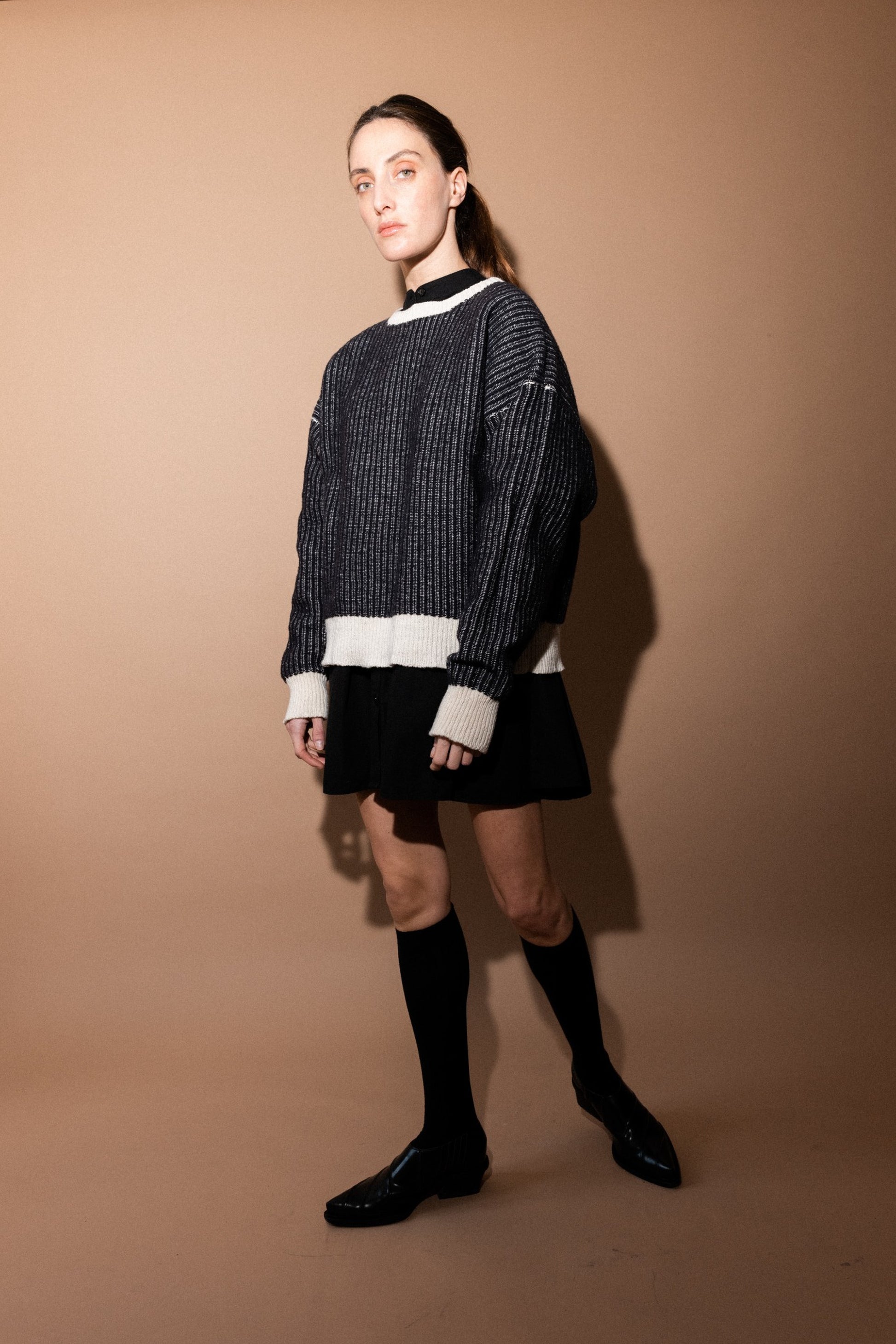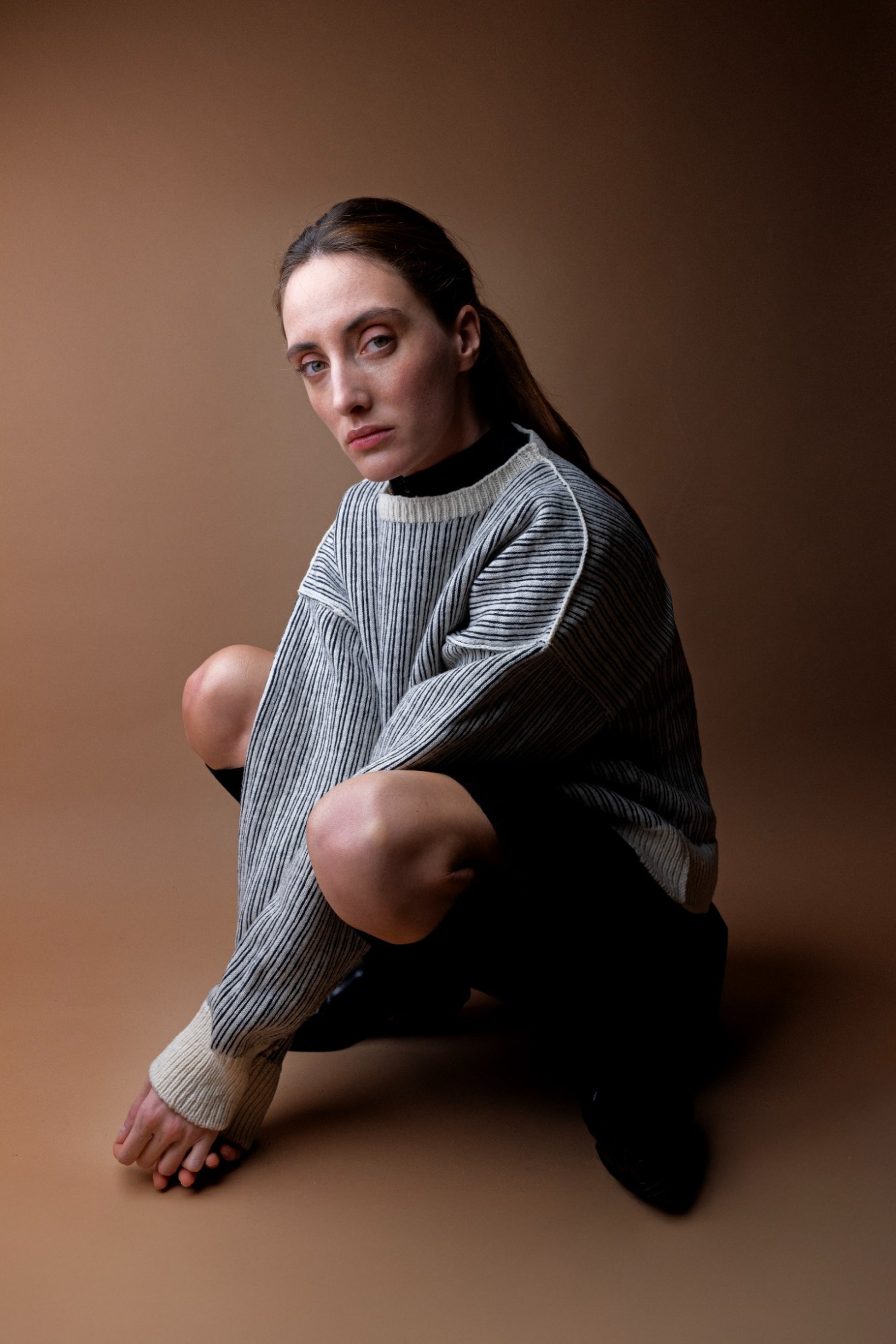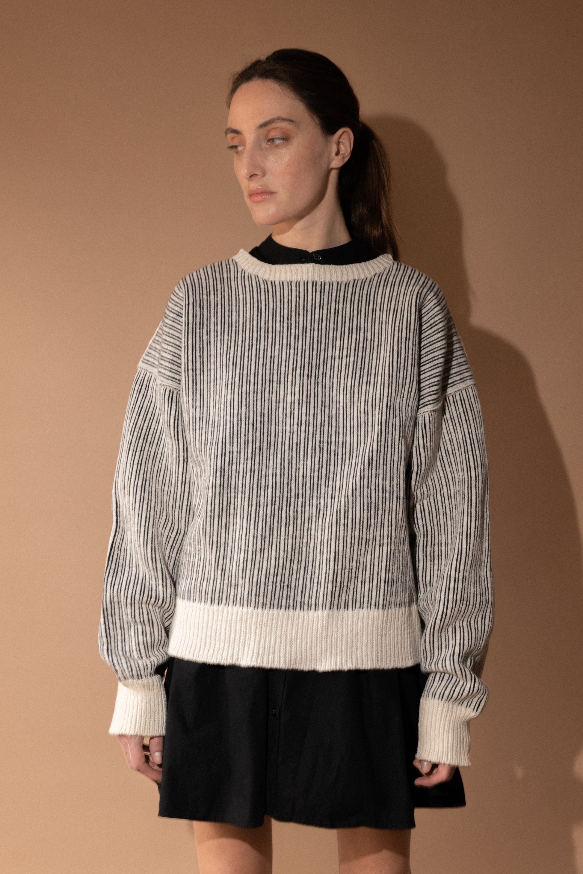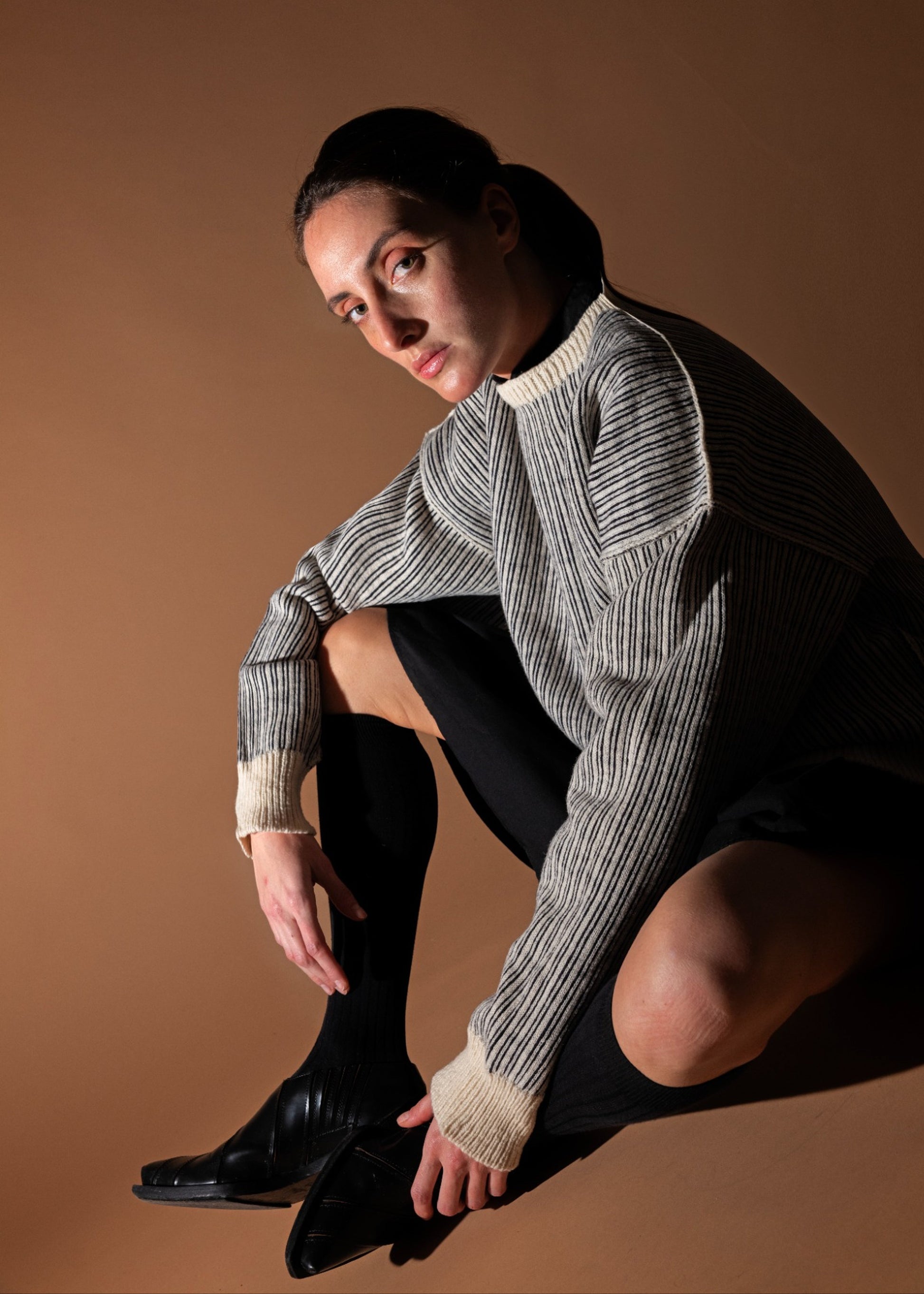 This sweater is carefully crafted on a domestic vintage knitting machine — one of a kind, with only one piece available.