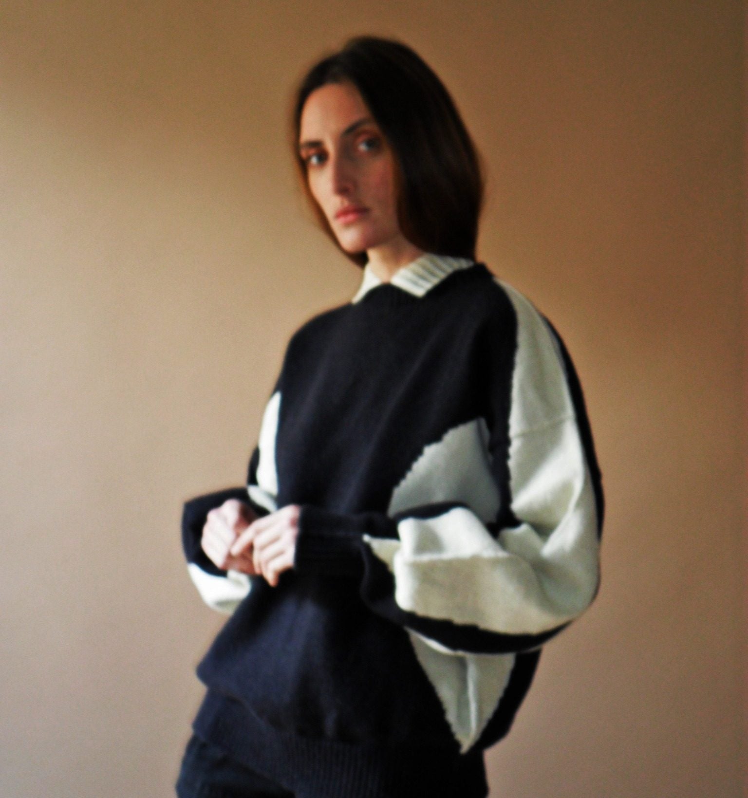 This sweater is carefully crafted on a domestic vintage knitting machine — one of a kind, with only one piece available.